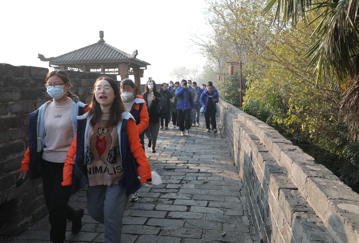 寒冷的冬天,護城河的河水一改往日的熱鬧,似乎靜靜地睡著了。陽光從城墻邊稀松的樹枝里透射過來,帶給人幾分明媚的暖意。口罩遮不住燦爛的笑意,矯健的身影活力四射。一路上,大家賞古城冬日風景,話集團發(fā)展,憧憬著美好的希望。